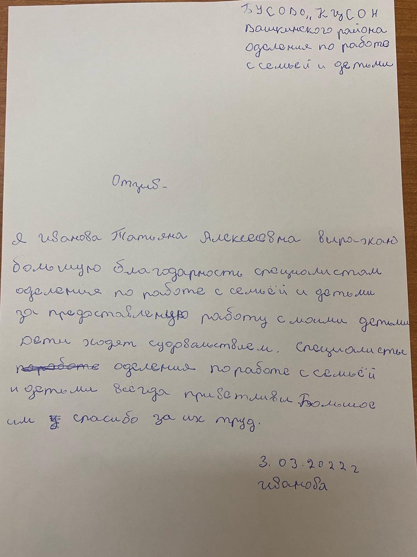 Отзыв ПСУ на дому Сушплениной А.Г.